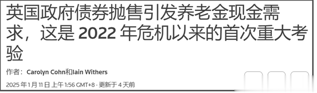路透社报道称,《英国债券抛售引发养老金现金需求,这是 2022 年危机以来的首次重大考验》