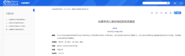 【2】中国知网——《论唐宋词人身份地位的历史嬗变》侯海荣。