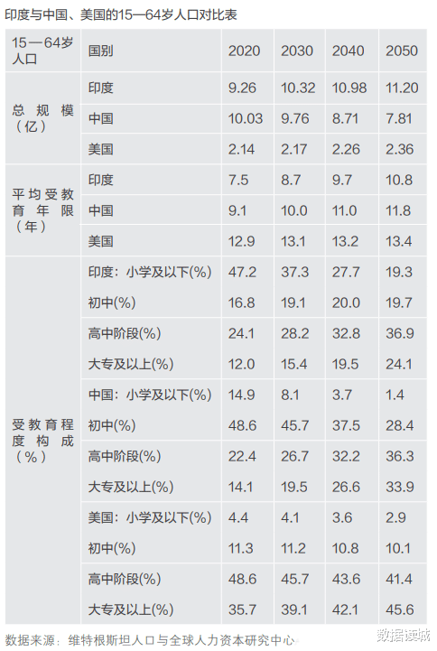 作为全球第一人口大国,人口是印度的优势,但人口数量之外,人口素质及教育成为关键。同为人口大国,虽然中、美两国的教育模式有很大差别,但都能保障有源源不断的高素质产业工人群体和高知群体接续供应,而印度则没有。印度接受过正规技术培训的15-29岁人群,只有不到5%的劳动力拥有正式技能,而这个数字在中国和欧美、日韩,分别是30%、50%、80%以上。