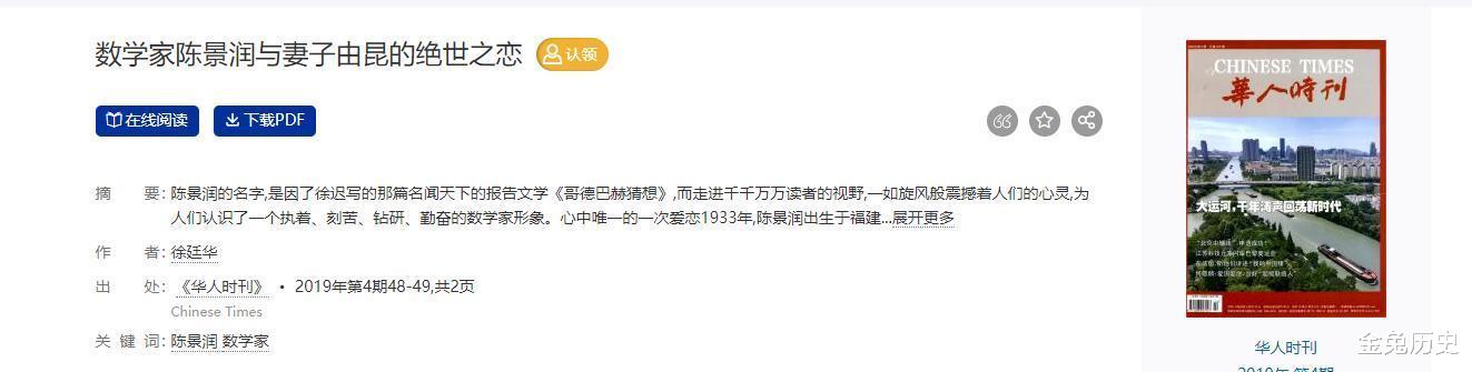 数学家陈景润与妻子由昆的爱情故事被《华人时刊》2019年第4期报道,展现了他们深厚而独特的情感纽带。