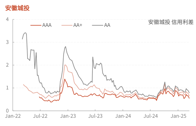 上周各等级城投和非城投信用利差均下行。三个级别的城投信用利差分别下行8.8BP、下行10BP、下行10.3BP;三个级别的非城投信用利差分别下行9.5BP、下行9.3BP、下行10.6BP。
