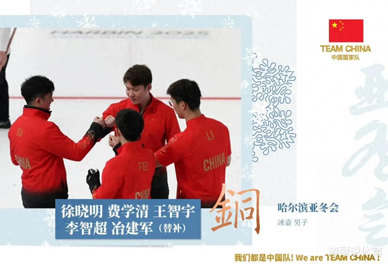 黑龙江哈尔滨,第九届亚洲冬季运动会进入最后一个比赛日,冰壶冰球的四项决赛压轴登场。在男子冰壶铜牌争夺战中,中国队10:3大胜中国香港队,斩获铜牌。