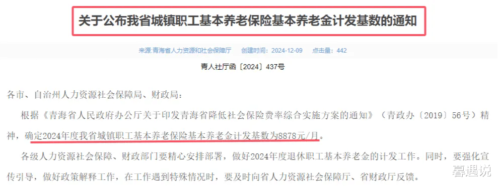 01多地养老金计发基数出炉随着12月的到来,全国众多省份的人社部门遵循惯例,对外公布了2024年度城镇职工基本养老保险的计算标准。这一动作预示着,最新退休群体的养老金将经历一次重新审核与差额调整环节,确保他们的待遇不受任何影响。①青海:率先行动,养老金计算标准达8878元/月在12月初,青海省人社部门迅速响应,发布公告确定了2024年该省城镇职工基本养老保险的养老金计算标准为每月8878元,位居全国前列。