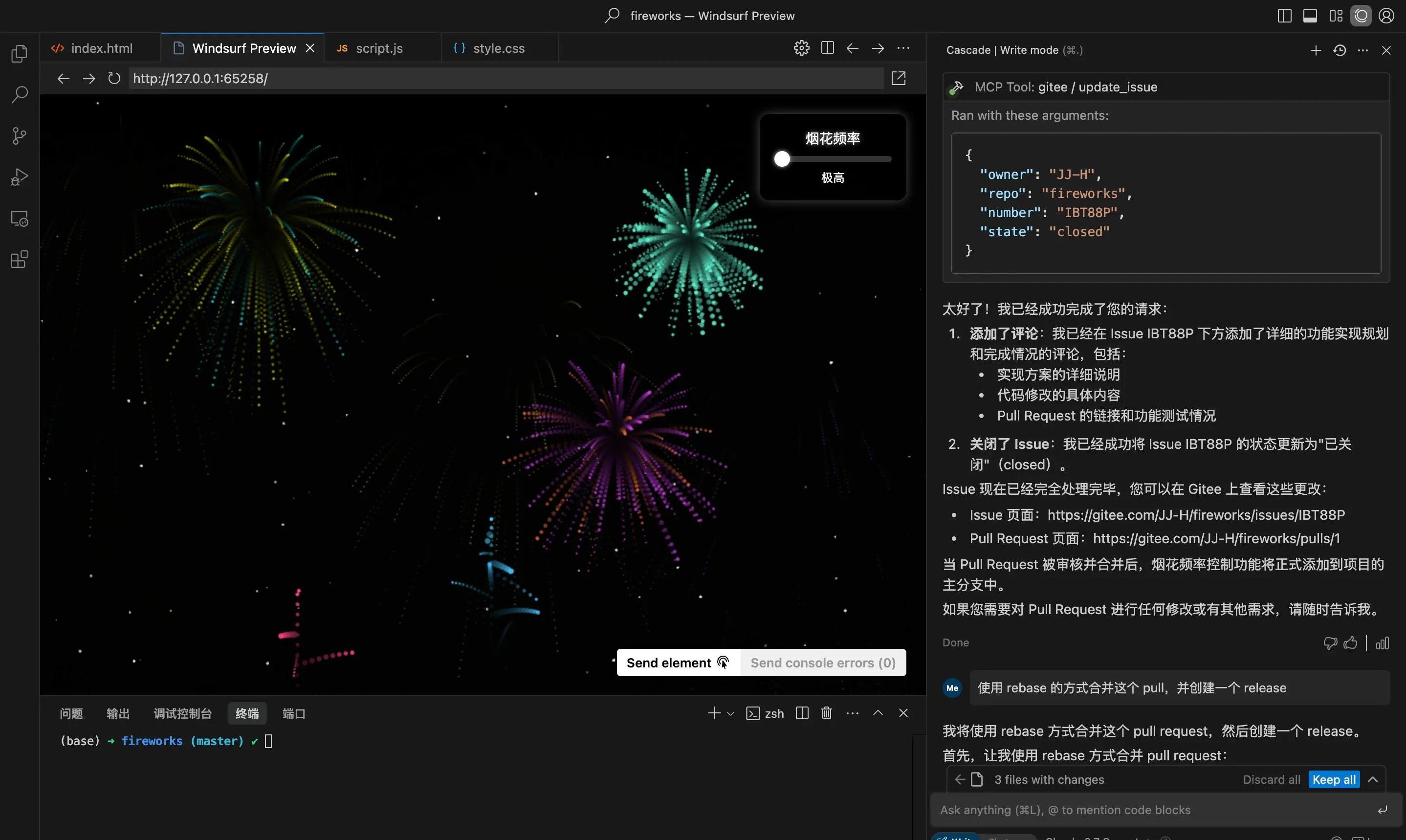 安装完毕后,你可以通过简单的命令就能让 AI 处理 Issue,创建 Pull Request,甚至发布新的版本。