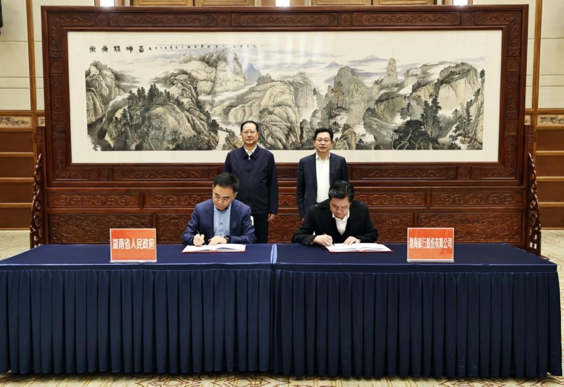 12月4日下午,渤海银行股份有限公司(以下简称“渤海银行”)与湖南省人民政府在长沙签署战略合作框架协议,深入贯彻习近平总书记关于湖南工作的重要讲话和指示批示精神,以金融“活水”赋能湖南高质量发展。湖南省委副书记、省长毛伟明,渤海银行党委书记、董事长王锦虹见证签约。副省长王俊寿,渤海银行行长屈宏志分别代表双方签约,省政府秘书长瞿海参加。