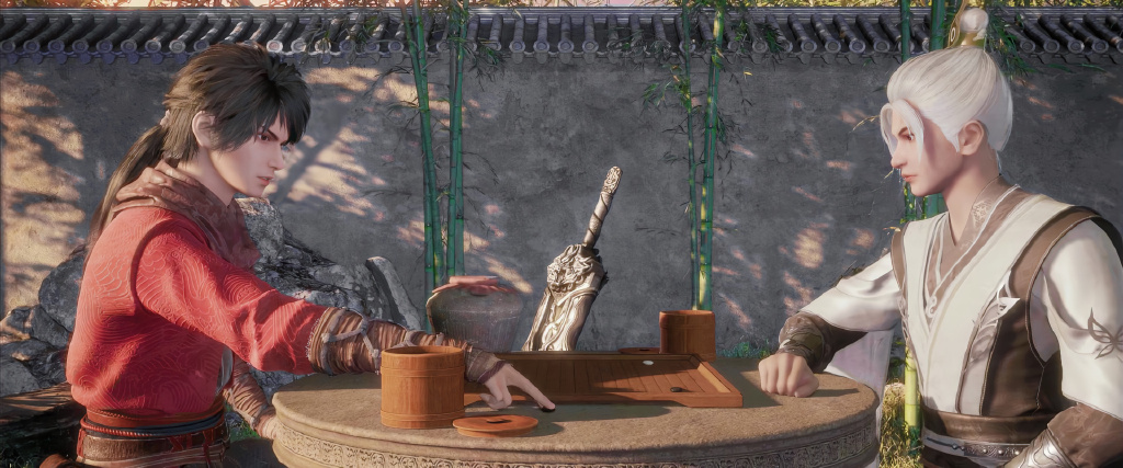 到下一个画面,两人棋子一黑一白,似乎表明一个人在暗,一个人在明。