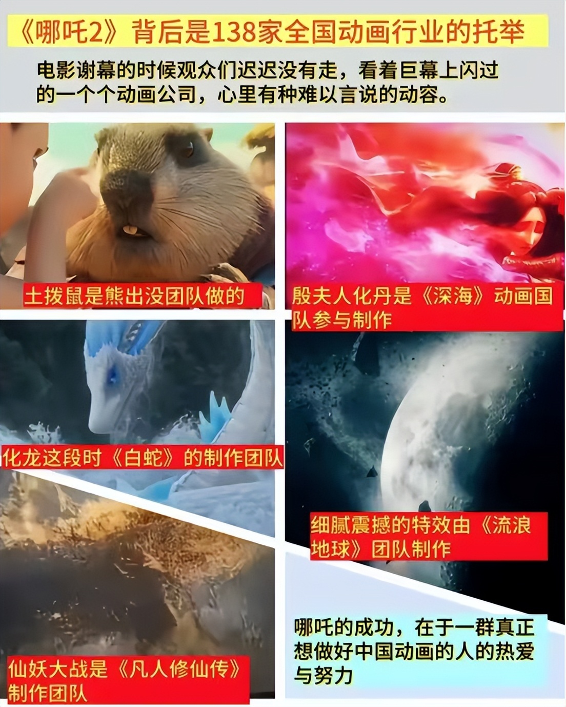 《哪吒2》片尾一共致谢了138家公司,从头扒到尾都无一家外国公司的影子,相较同期某部“大片”片尾满满的外文致谢,《哪吒2》的另类显得格格不入。