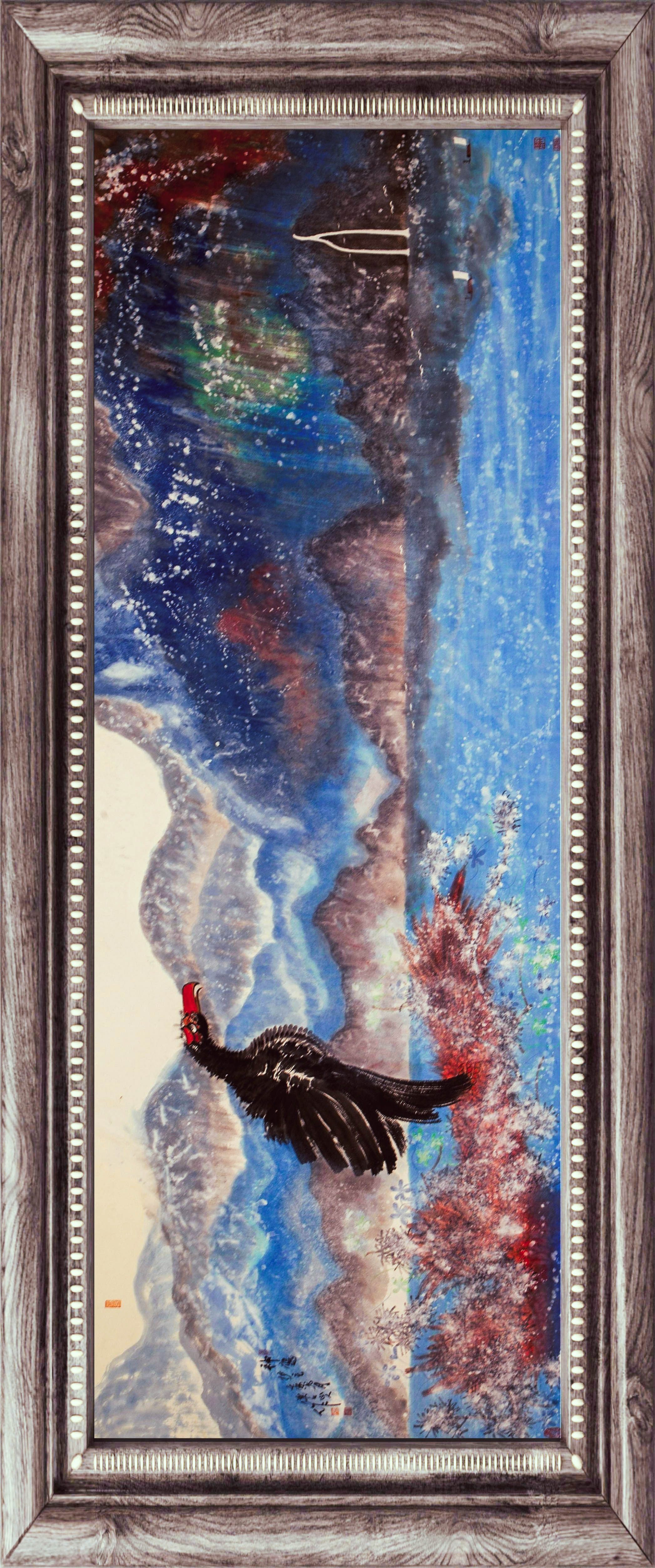 朱祖国用中国画的现代绘画语言和独立原创风格,构成了他的画鹰艺术体系,开创了当代画鹰一派。在朱祖国笔下,鹰的绘画艺术凸显出一种具有时代特征的文化符号。在当代艺术、多元艺术,以及现代艺术思考的跨界思潮影响下,以鹰为载体的艺术在中国画的文化传承与发展中得到了创造性的表现。其主体意识直指当代精神和人格风尚,弘扬阳刚正气和国运强盛的精神能量。直接反映大文化背景下共通的价值观和审美意志。