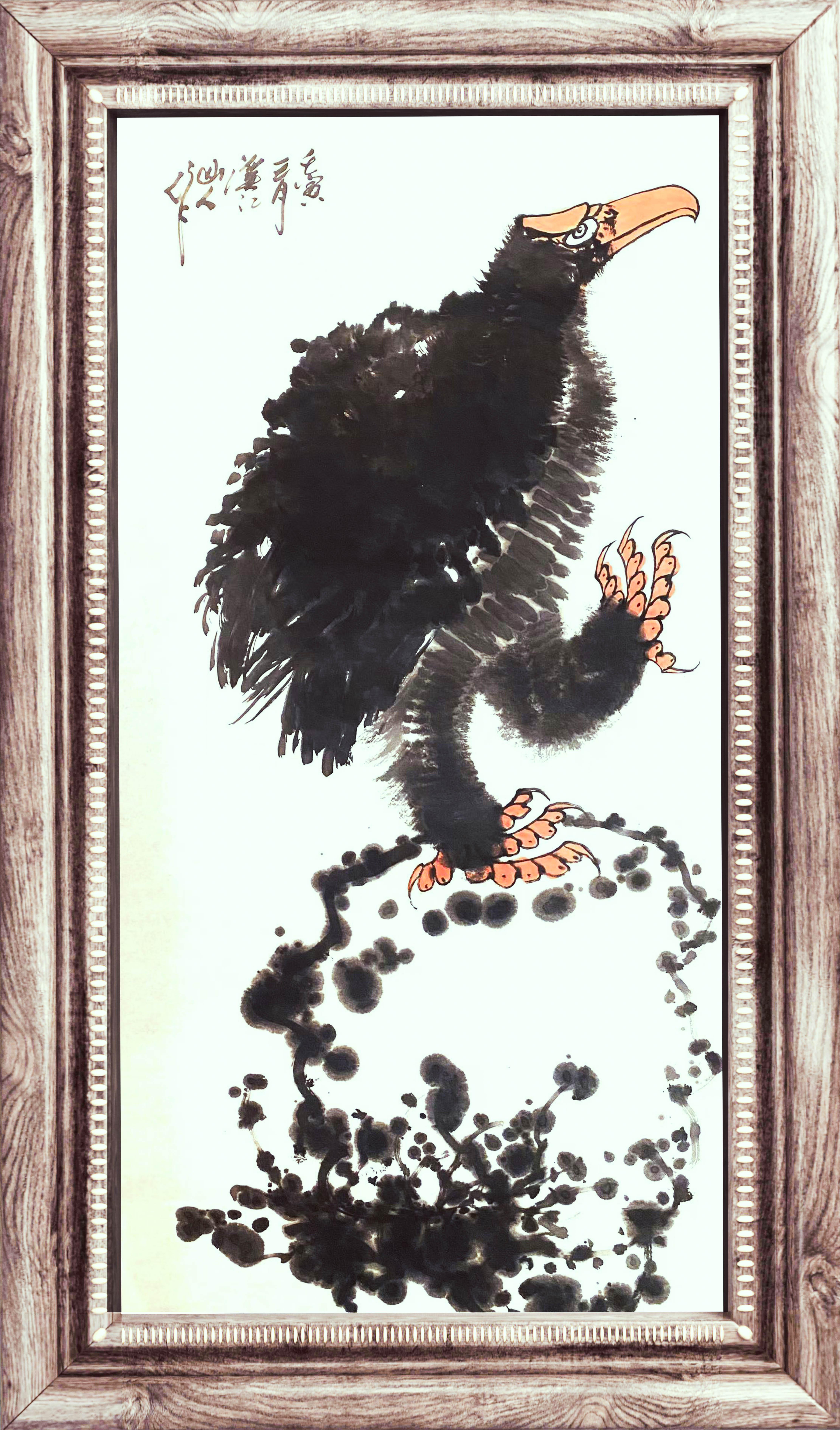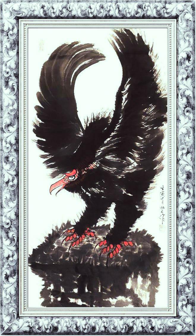 画鹰大家、指墨画艺术大家朱祖国先生神鹰护主系列,画前人所未有,道今世之情怀,开自家之样式。朱祖国先生突破传统花鸟画程式规范。其把人物画的精神,山水画的高远,花鸟画的寓兴融为一体。以鹰的形象为载体,用现代思维的结构组合,夸张概括的表现手法来传达艺术境界,反映当代文化的时代特征。朱祖国先生探索和创造新的想象空间和艺术样式,演绎当代艺术的形式美感,拓展精神升华。