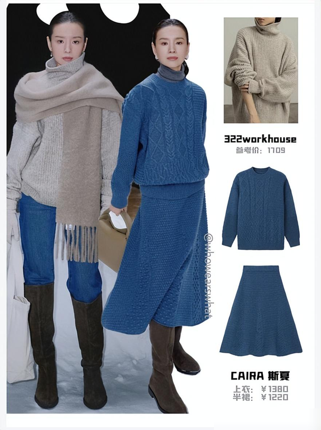 在2023年冬季查看董洁“冬日私服”这个词,看到她精心挑选的一整套蓝色系造型,我觉得欣喜。