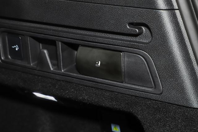 精灵#5后备箱的开启方式很特别,smart字母“LOGO”的“a ”标识实际上就是后备箱开启按键,按下去后备箱就可以打开了。尾箱基础容积630L,并且有一个快捷拉手,可以把后排的座椅是完全放平,出去野游野营的时候,可以把它当做一张大床来使用。除此之外,后备箱右侧还有一个按键,按下之后,后保险杠下面就会伸出原厂电动拖车钩,有1.6 吨的拖车资质,收回去的时候看不到任何拖车钩的痕迹,隐藏得很好。