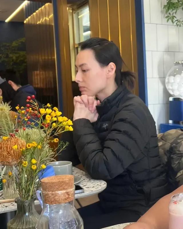 分享的照片中,36岁的梁洛施穿着简单低调,身穿黑色羽绒服、头发随意扎起。