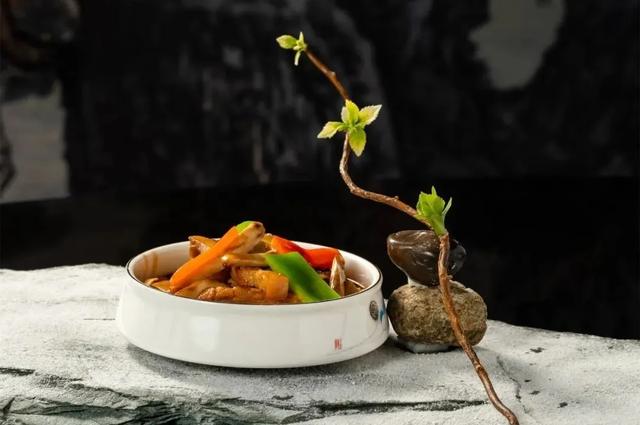 将当季新鲜鸡枞菌与五花肉同炒,滋味咸鲜,锅气十足。