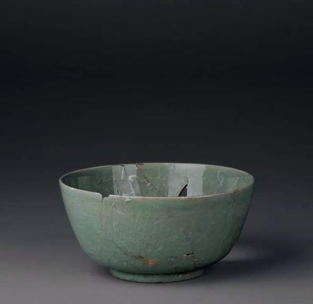 大量未熔釉料和气泡的存在造成完全失透感和半木光状态。具有玉质感的粉青色釉,其烧成温度比月白釉稍高,大约1150~1200之间。