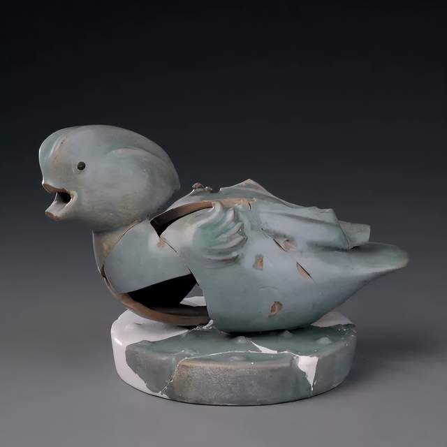 2、化学分析结果表明,汝官窑胎是用高铝粘土配制而成,其(Al2 O3)含量介于27~31%之间,助熔剂(CaO+MgO+k2O+Na2O)含量在2.6~4.9%之间,象这样的高铝质胎,其烧成温度至少要达到1300才能使胎完全致密化。但根据测试结果并结合实践经验进行判断,大多数汝官窑的烧成温度只有1150—1220,少数有明显流釉现象的产品可达到1250。