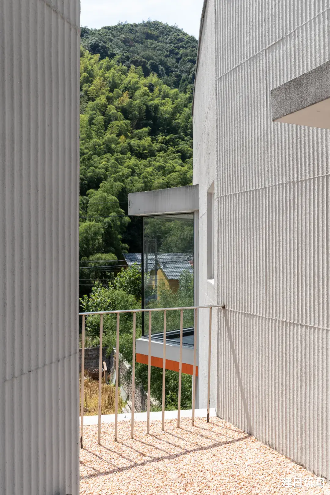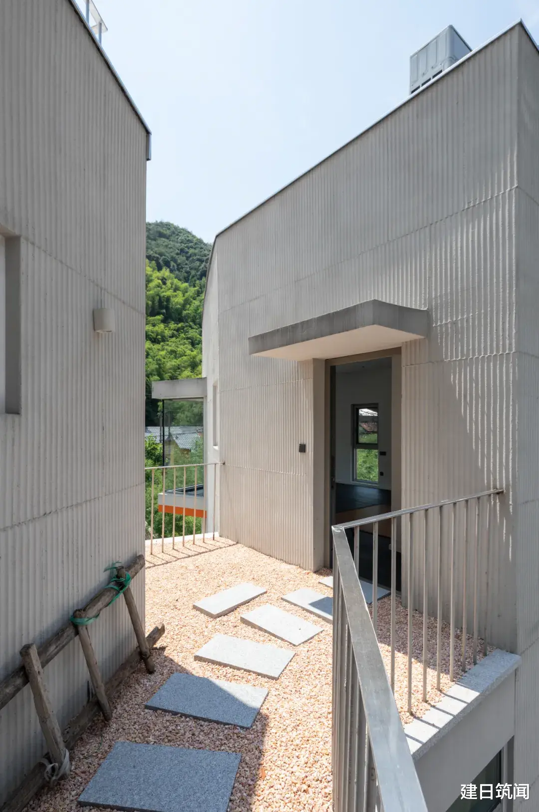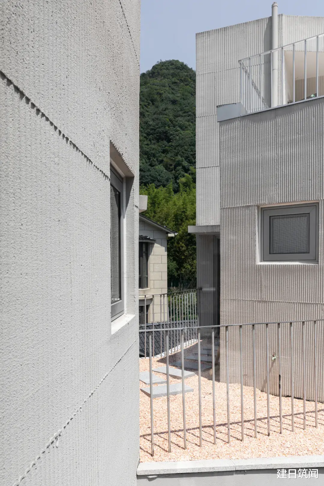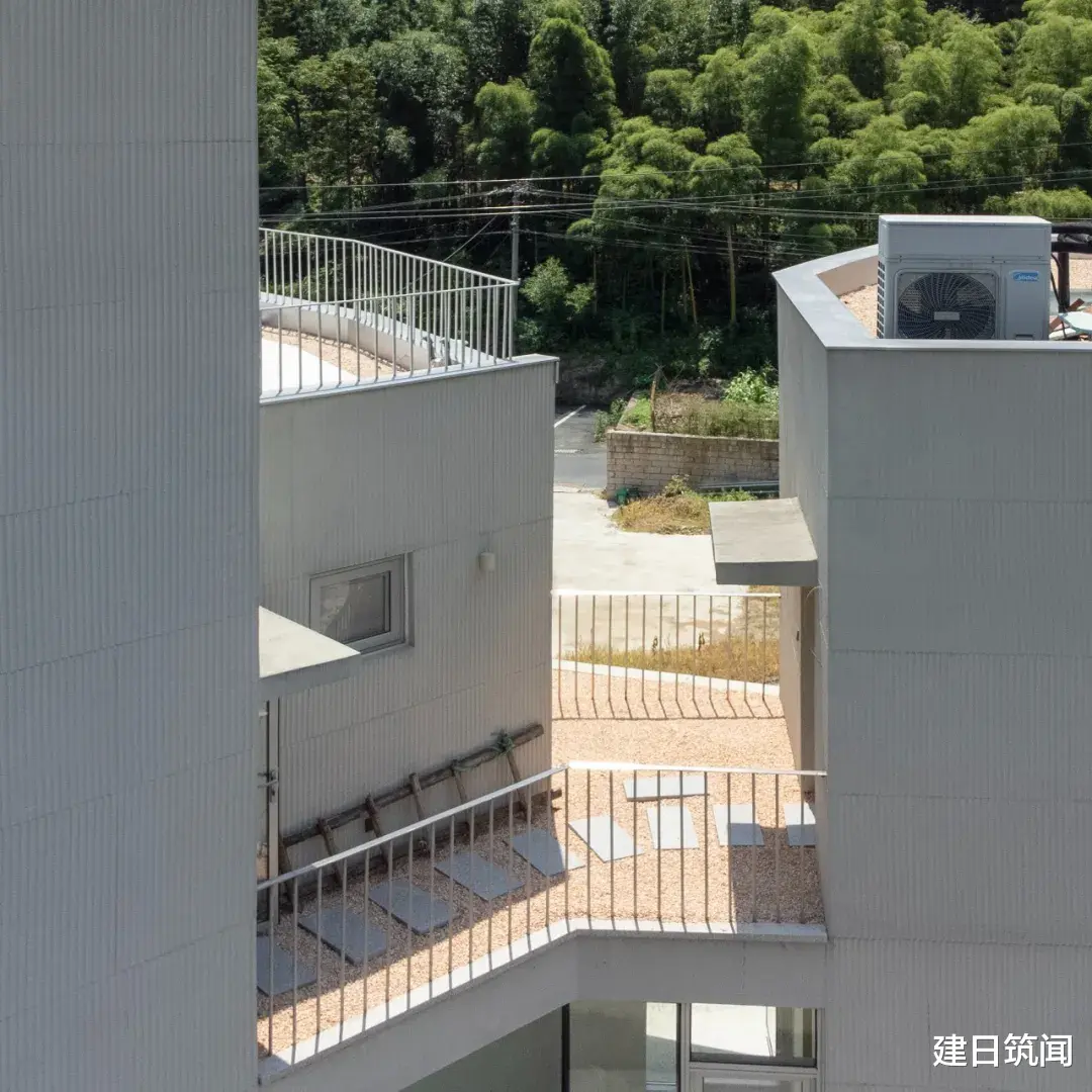 既然房间看成了建筑,那么建筑的集群便形成了社区。我们希望这种社区性能在空间上有所表达。在二层及三层的处理上,我们有意的在房间之间插入了一些露天的公共空间,这些空间或是阳台,或是以露台的形式。房间的住客可以在这些空间乘凉聊天或者欣赏⻛景。而这种公共空间同时意想不到的给了整个建筑如同山谷般的空间结构,视线通过这些空间穿透过去,消减了建筑的实体感。让居住在北侧的村⺠也能从这些空隙中瞥⻅南侧的⻛景。