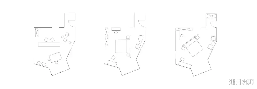 综合了上述视线,采光以及通⻛等众多因素,最终形成了每个房间的形态。