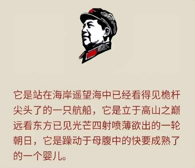 在抗日战争亡国论调之下他以敏锐的洞察力写下那篇著名的《论持久战》,道路是曲折的,前途是光明的,黑暗即将过去,曙光就在眼前,坚信中国人民必将战胜日本帝国主义,给饱受日本凌辱的中国人民带来胜利的希望!