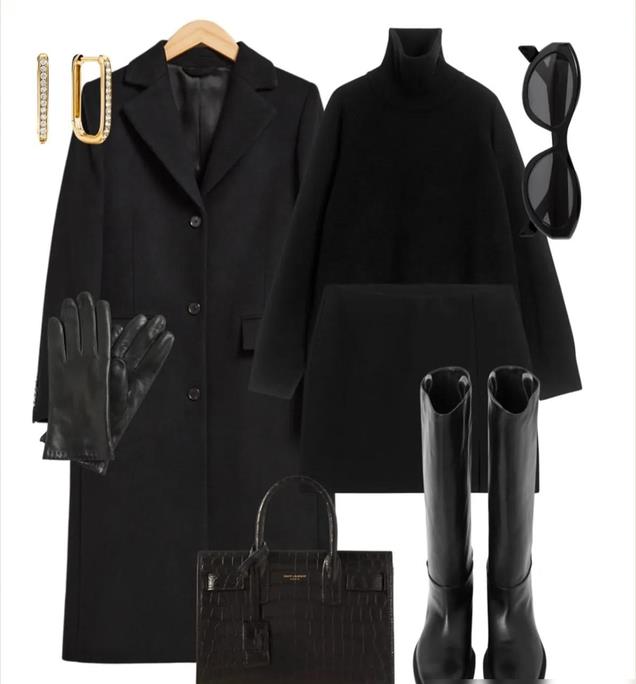 气温逐渐下降,黑色大衣的穿搭方案已备好了?黑色大衣的穿搭不仅仅局限于保暖,设计款更能展现出与众不同的魅力,像这种 针织连衣裙配上大衣,收腰的设计勾勒出纤细的腰身显瘦效果奇佳,同时也能展现出女性化的风格。