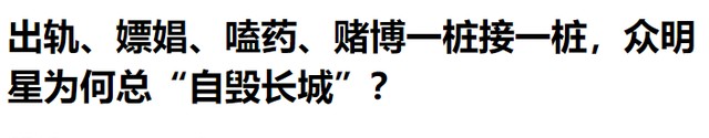 参考信源:扬子晚报2024年10月17日——出轨、嫖娼、嗑药、赌博一桩接一桩,众明星为何总“自毁长城”?