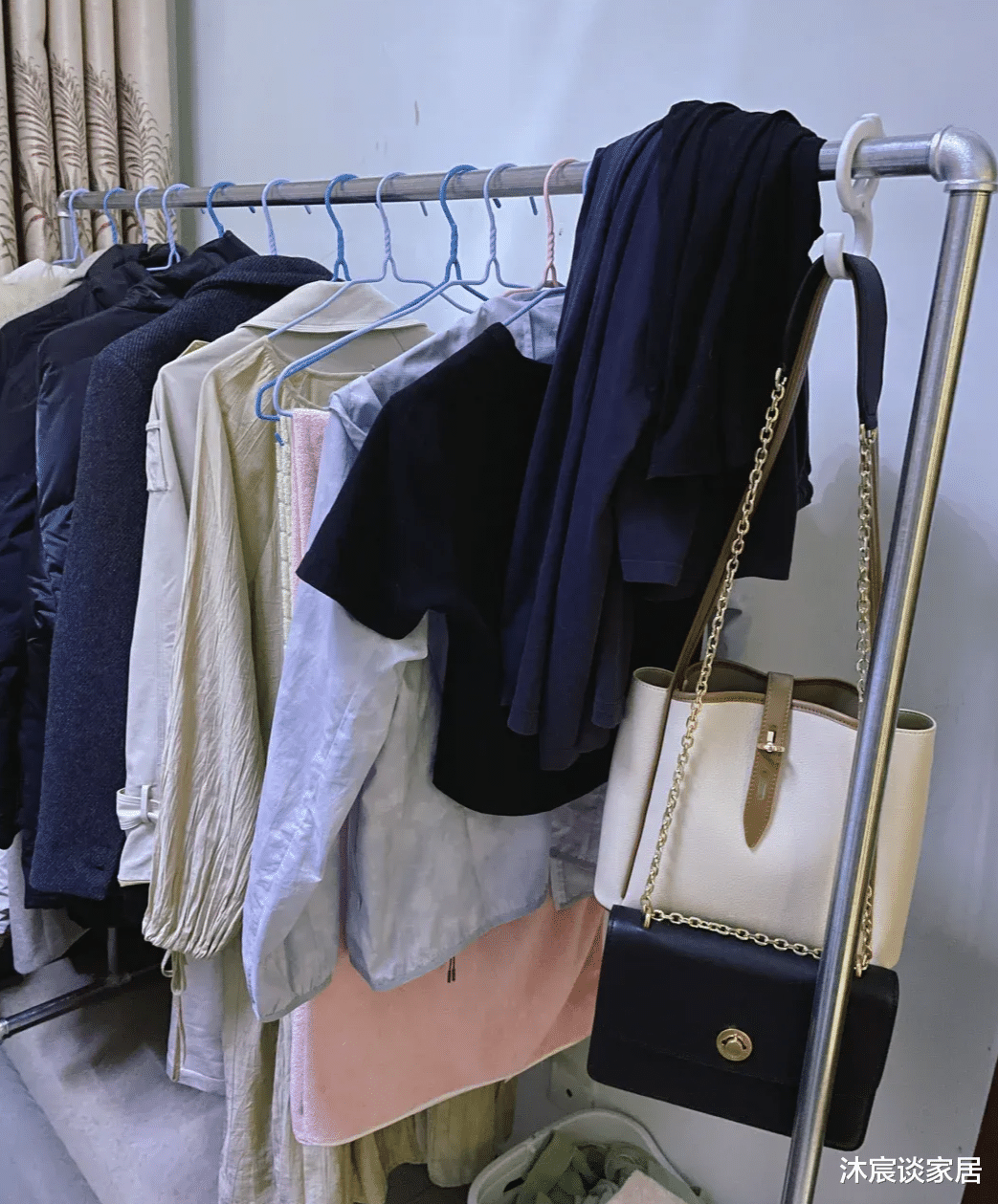 直到有一次她去菜市场买猪肉,发现了挂猪肉的架子,于是她灵机一动,不如花几十元买个这样的猪肉架子来挂衣服,不仅结实耐用,而且还是不锈钢材质的,环保又安全。