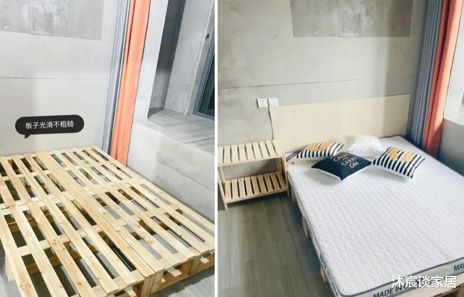 现在买一张床怎么也得要上千吧。可有些年轻人就找到了床的“平替”产品,那就是物流用的叉车木托盘。这种托盘架很便宜,而且纯原木,踩在上面特别结实,几乎都不用安装,买四块拼在一起,随房间的面积自由拼结组合,和搭积木一样好玩。然后再放上床垫,真是环保又安全,没甲醛没异味,最重要的是能省下上千块。