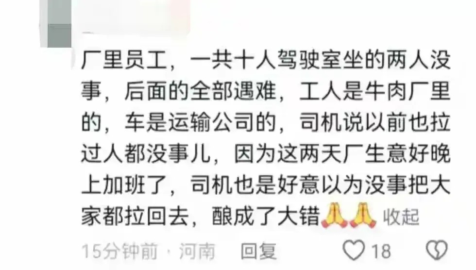 您怎么看《河南冷藏车悲剧:8名工人遇难,意外还是忽视?》?欢迎在评论区分享您的看法!如果感兴趣,请关注点赞转发给朋友!(如对文章内容有异议请及时联系我们)