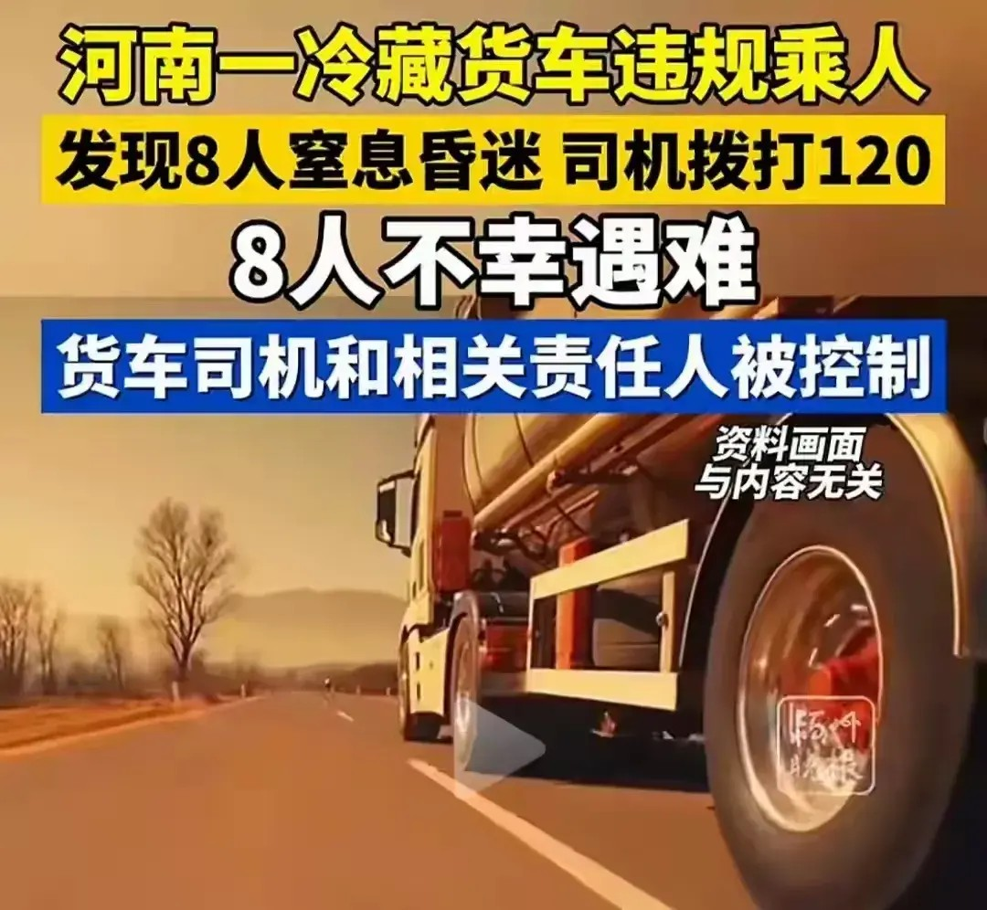 河南的一个普通夜晚,一辆看似平常的冷藏货车内,发生了令人揪心的悲剧。8名工人,因为一次错误的选择,永远定格在冰冷的车厢内。这起事件不仅震惊了当地,也引发了社会各界的广泛关注。