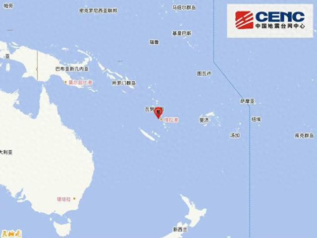 中国地震台网正式测定:12月17日9时47分在瓦努阿图群岛(南纬17.75度,东经167.95度)发生7.2级地震,震源深度30千米。