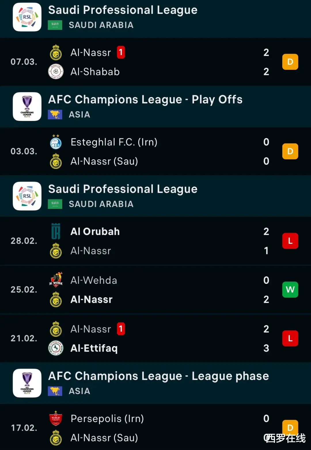 3天后将迎来亚冠1/8决赛次回合的比赛,首回合利雅得胜利在客场与德黑兰独立0-0战平。回到主场这将是一场生死战,能否晋级?在联赛夺冠的希望越来越小时,亚冠是球队这赛季唯一目标。如果被淘汰,相信皮奥利在胜利的生涯也许该划上句号了......