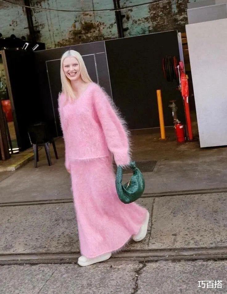 在肤色允许的条件下,大家可以选择粉色系大毛衣,宽松肥大的版型配上鲜明亮眼的配色,既不会轻易被撞衫也不会轻易淹没在人海,随时随地都能穿出门。