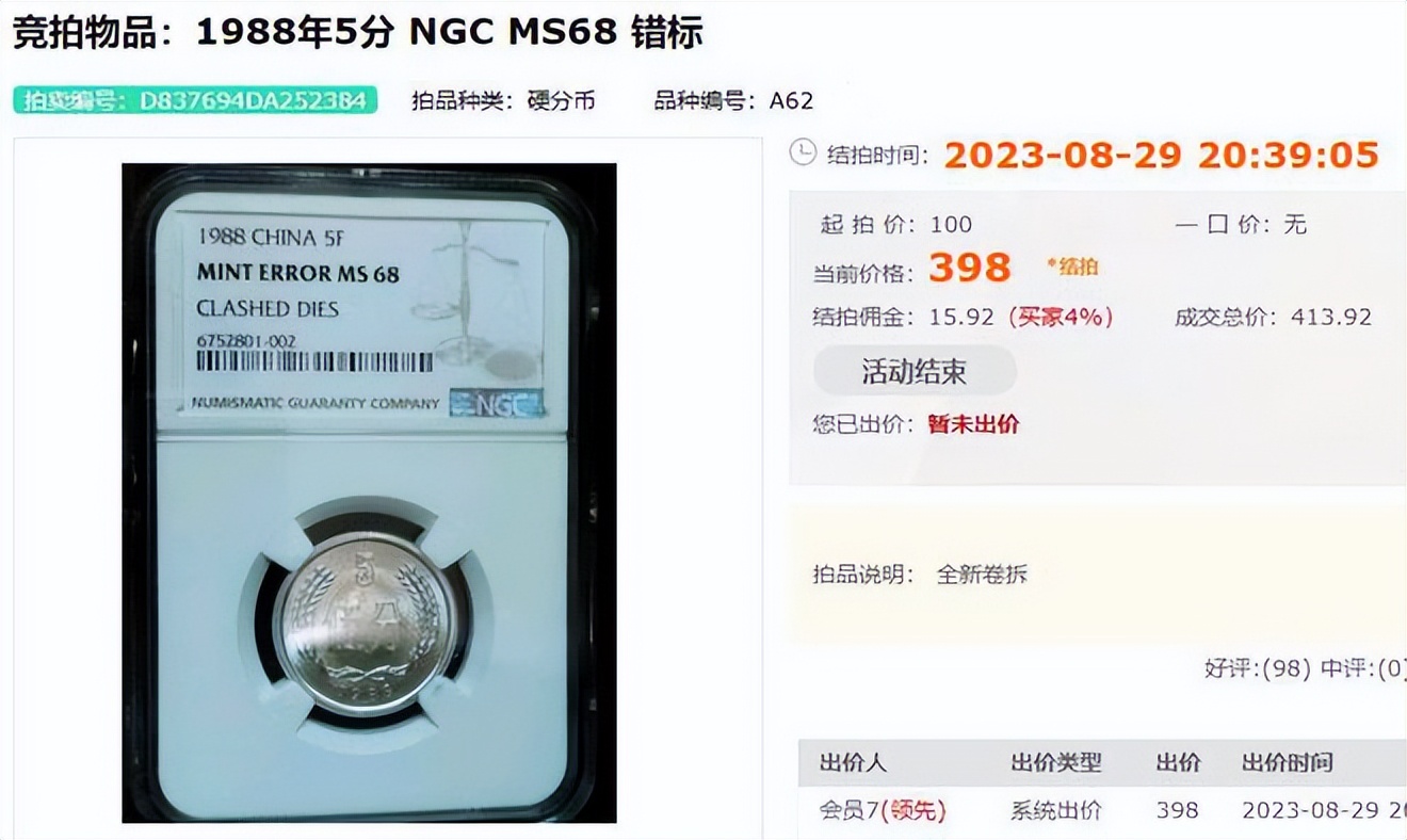 在今年下半年的一场网拍中,一枚少见的5分硬币拍出了414,已经是能涨8000多倍了,它的年份很普通只是1988年,但在币面上有一个奇怪的特征,那就是两面都能看到五角星,这里要提醒大家的是。