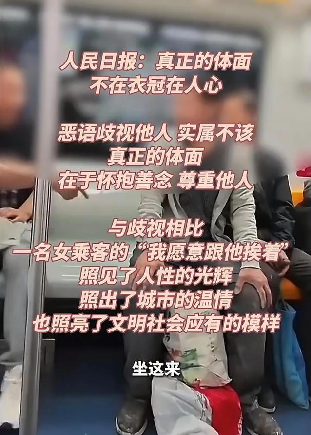 一句话,瞬间将地铁车厢里不和谐的氛围打破。
