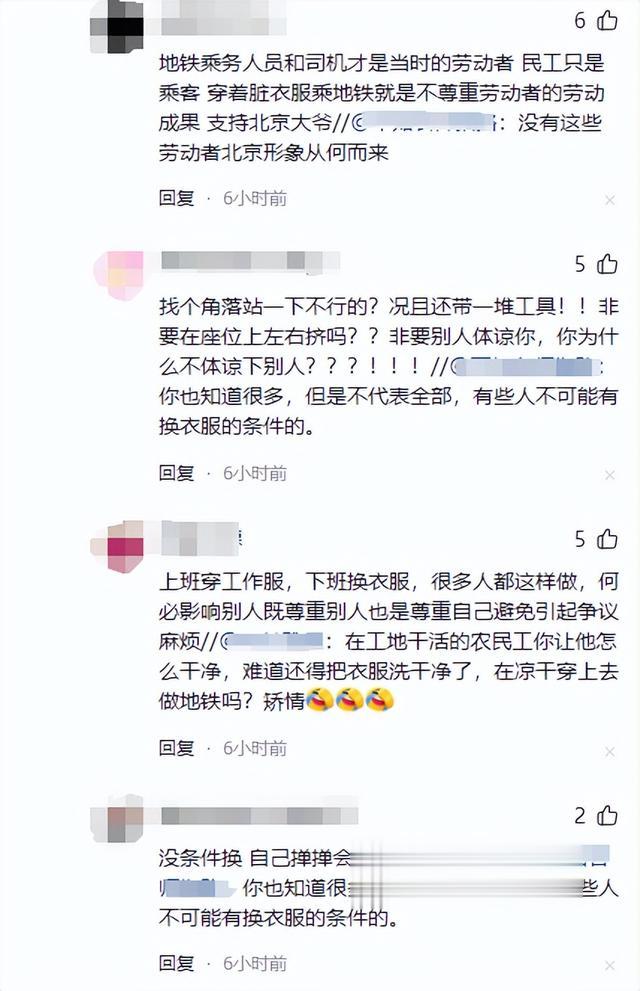 而且像这样从事体力劳动的工人,真正能坐几次地铁,还是多理解多包容。