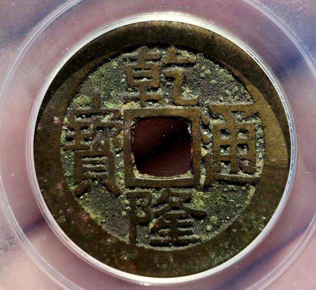 区分宝源局小乙大字的方法就是首先看乾隆通宝是不是大字版的,如果是就继续看钱币的乾字的乙,写的是不是小乙,就像下面这个图片一样。