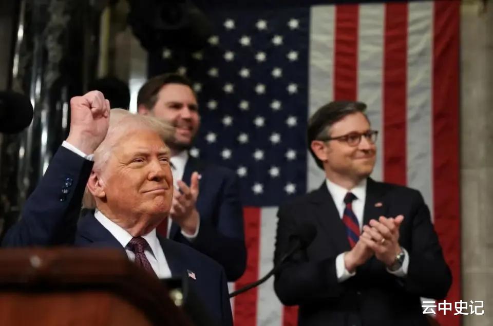 3月4日晚,美国国会大厦穹顶下,特朗普昂首阔步走向讲台,身后跟着一群西装革履的共和党议员,活像黑帮电影里大哥出场的排场。