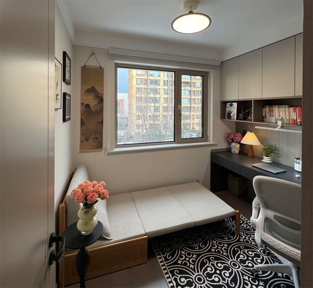 原本,这个小空间是家里的次卧室,但在一番装修改造后,却变成了兼具阅读、工作、游戏的综合性书房,装修也偏向轻中式风格,真的太有氛围感了。