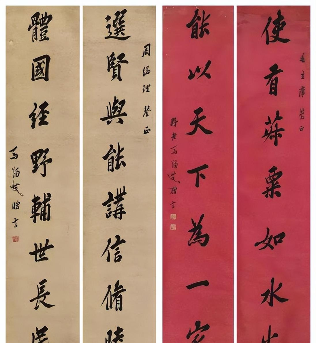 两幅对联的深意与书法魅力这两幅对联不仅在书法上有极高的艺术价值,在内容上也富有深意。