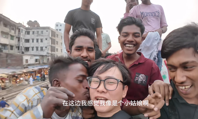 在火车上,旅行者充分感受到了孟加拉国人民的“热情”。一路上,他不断被当地的男人们“特殊对待”,一会儿被这个亲一下,一会儿又被那个强吻。