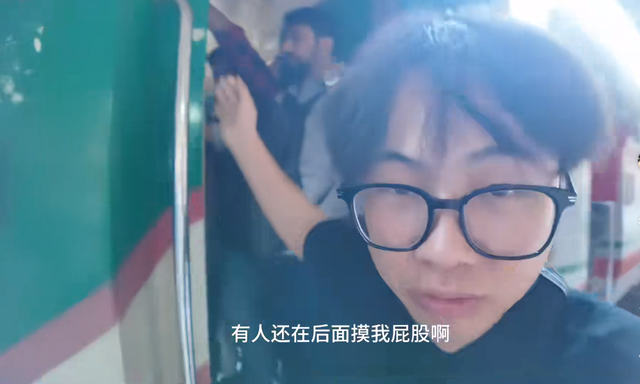 而且,车厢里十分拥挤,人与人之间几乎没有空隙,在这样糟糕的环境里,博主还遭遇了更过分的事,有人在他身后摸他屁股,这突如其来的骚扰让他既震惊又愤怒。