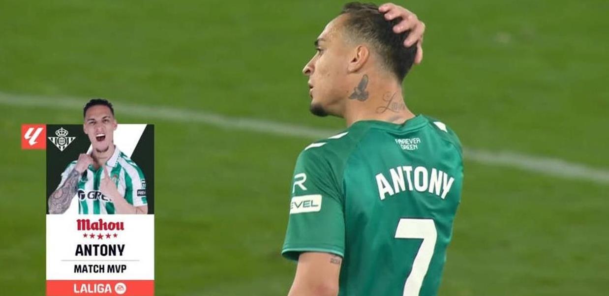 安东尼逆袭:从曼联圆规到贝蒂斯圆神在足球的舞台上,球员们的状态和命运常常如潮起潮落,令人难以预料,就像曼联球迷戏称的“圆规”安东尼一样。租借至皇家贝蒂斯后,安东尼的表现犹如脱胎换骨。他在西甲连续三场比赛中贡献了两粒进球和一次助攻,并且每场比赛都获得了最有价值球员的称号,上演了一场令人瞠目结舌的逆转好戏!2月17日,英超第25轮迎来了焦点对决,热刺在主场以1-0战胜曼联,麦迪逊的进球决定了比赛的胜负。曼联在这个赛季遭遇了热刺的三连败,目前仅以29分排在联赛第15位。与此同时,在西甲赛场,皇家贝蒂斯在第24轮的比赛中主场迎战皇家社会。安东尼再次成为比赛的关键人物,他的一次助攻和一粒进球,帮助球队以3-0的大比分获胜。比赛进行到第31分钟时,安东尼与伊斯科默契配合后突入禁区,为球队赢得了一粒点球。然而,洛塞尔索主罚的点球却被对方门将雷米罗扑出。下半场开始后,第51分钟,安东尼接队友传球,一脚凌空抽射破门,为贝蒂斯首开纪录。第64分钟,罗德里格斯的射门被防守球员挡出,随后罗卡用左脚补射得分,贝蒂斯扩大了领先优势。第69分钟,安东尼在边路送出精准传球,罗卡在禁区外一脚低射,梅开二度,安东尼也完成了助攻和进球的双重贡献。赛后,安东尼毫无悬念地被评为全场最佳球员。至此,他在加盟贝蒂斯后的三场西甲比赛中均荣获最有价值球员称号,仿佛“圆神”附体,势不可 挡!