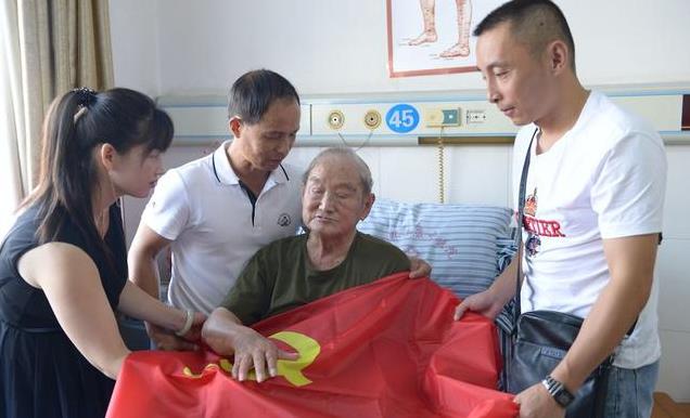 他戴着党徽,胸前挂着军功章,用微弱却坚定的声音完成了入党宣誓。