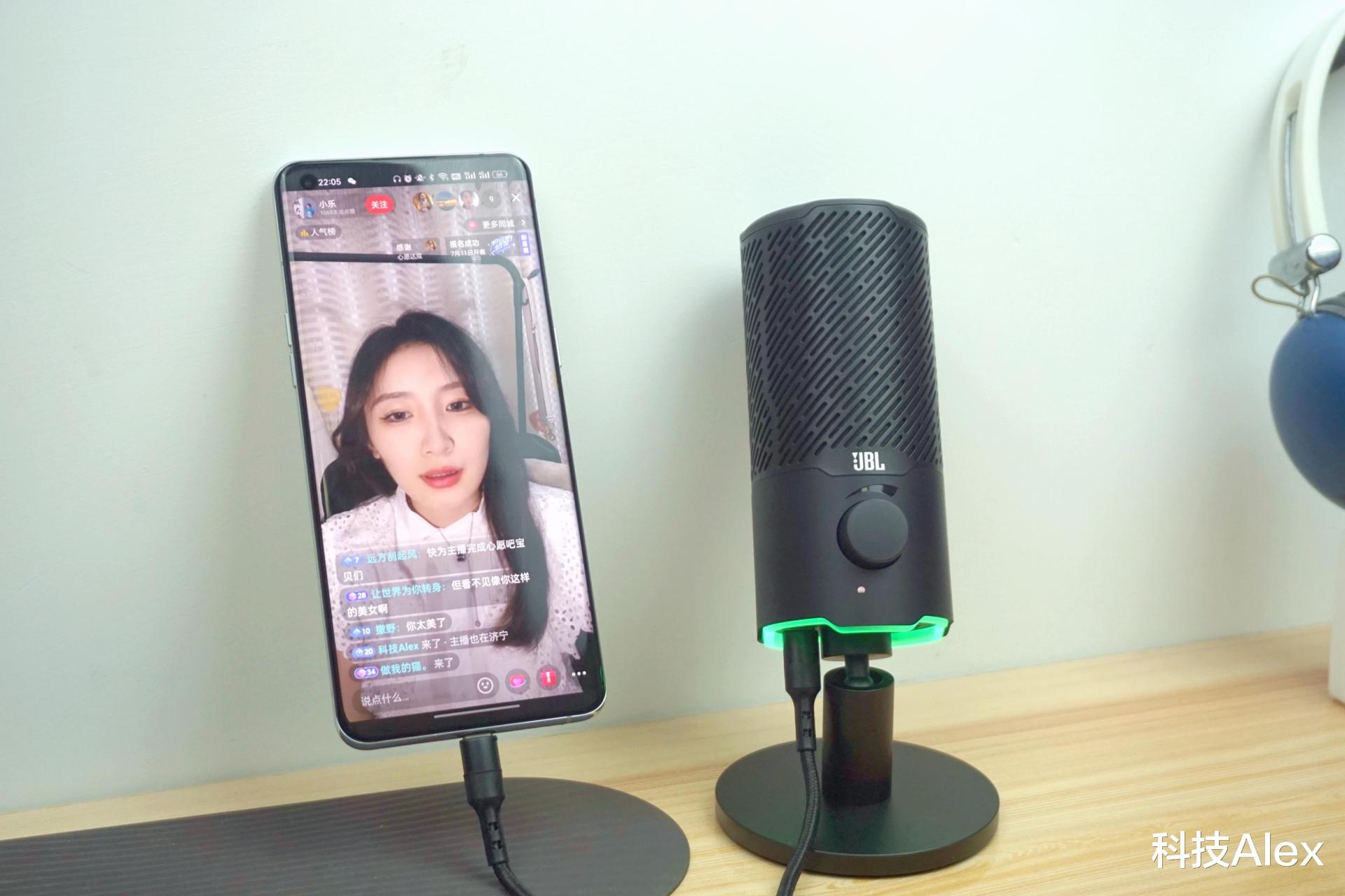 使用手机开直播时,可以直接把JBL QUANTUM STREAM专业USB电容麦克风连接手机(需要支持OTG功能),过程中无需另外的设置。效果方面,不管是自己从接驳耳机的实时监听当中,还是从观众的反馈当中,都能明显感受到这款麦克风对主播音质的提升非常明显。