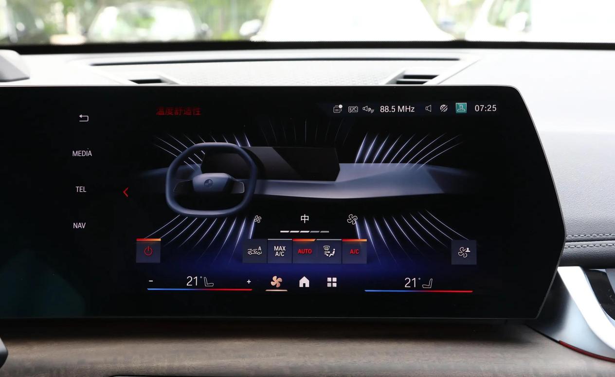 进入车内,X1的内饰设计相对简洁,虽然用料上略显廉价,但整体布局和功能配置都比较合理。中控台上配备了一块10.7英寸的触控屏幕,内置了宝马最新的iDrive系统,操作流畅度和功能丰富度都比较不错。此外,X1还配备了10.25英寸的全液晶仪表盘,科技感十足。配置方面,X1全系标配了自动空调、雨量感应式雨刷、后视镜电动加热折叠等实用配置。高配车型还配备了哈曼卡顿音响、全景天窗等高端配置,进一步提升了驾乘体验。