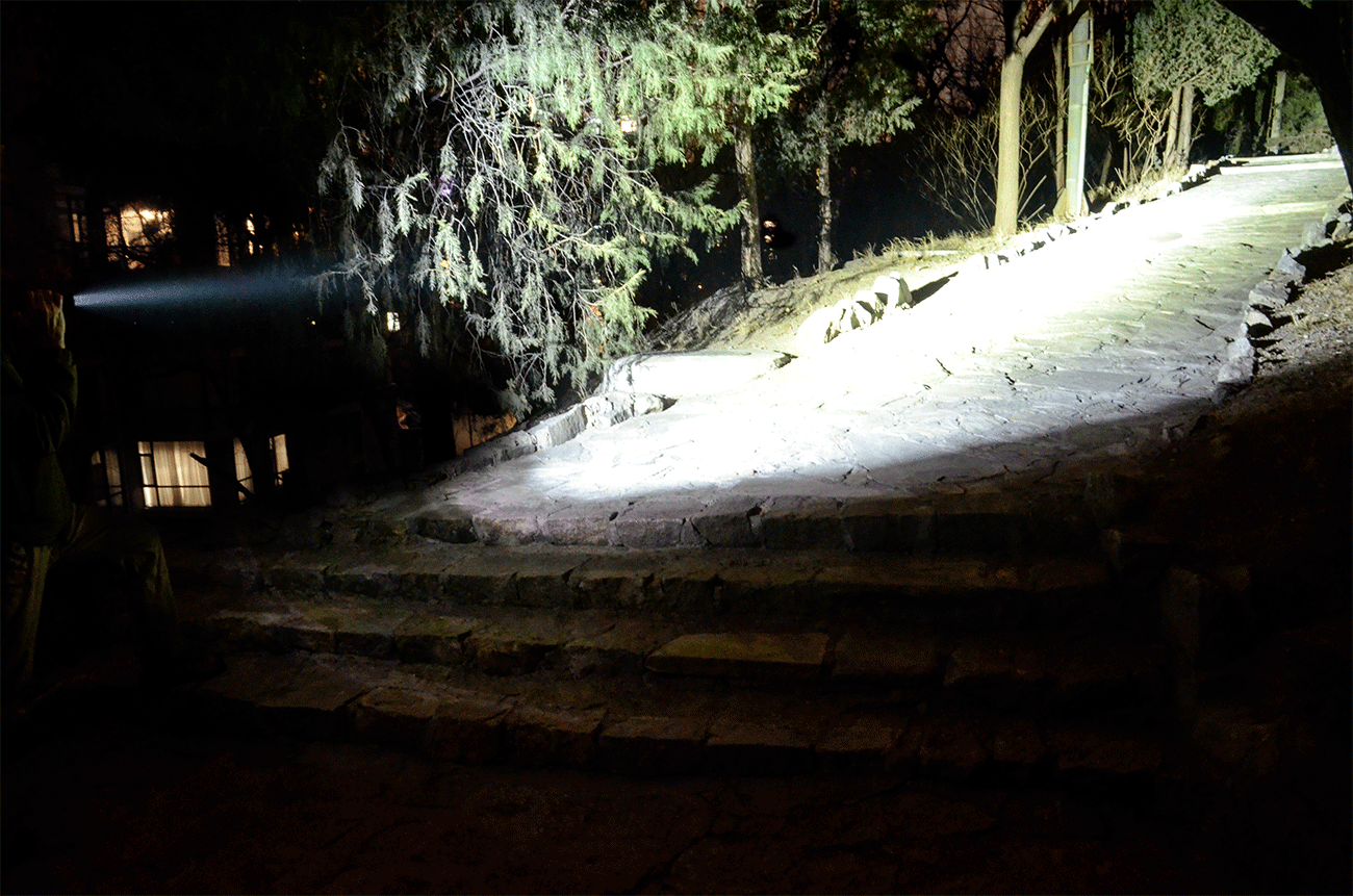 战术手电的主要作用就是强光压制,XT11GT Pro的最大光通量为3300lm,中心光强接近30000坎德拉,最大照射距离达到380米,聚光效果很好,很远的地方都能看得清清楚楚。