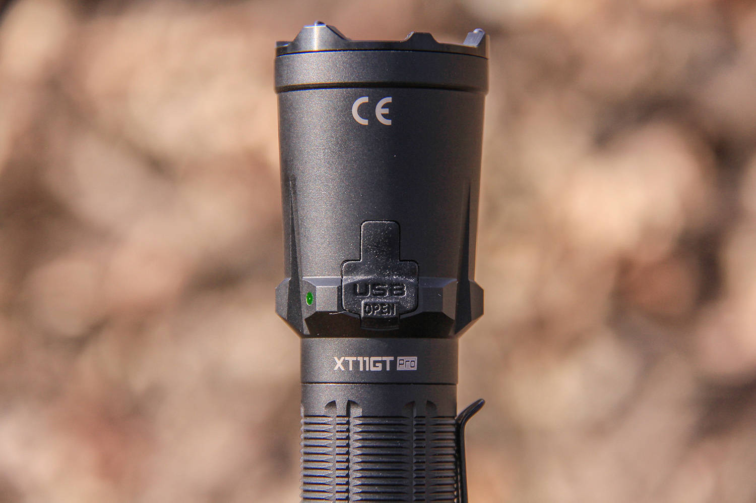 XT11GT Pro支持筒身直充,灯颈侧面开了USB-C通用充电接口,支持2A大电流快充,平时用胶帽封堵,保持良好的防尘防水性能。