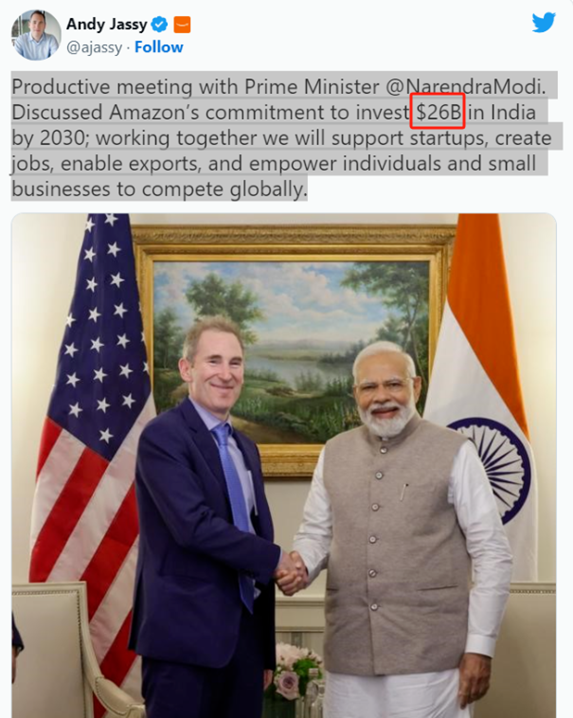 亚马逊在印度的投资金额将达到260亿美元 图源:Linkedin