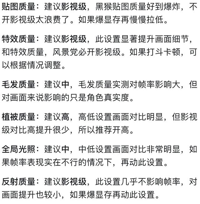 我4070ti。直接2K,影视级,光追全拉满,动态模糊垂直同步关,帧生成开,dlss开。过场100帧左右,打斗7-80帧。后来开了直播obs,打斗6-70帧左右不感觉卡,就刚开始大圣打杨戬前有点音画不同步,过了就好了,后来打幽魂他放气功时候会突然卡住,然后重启一下就没事了。我好像没更新英伟达最新适配黑神话的N卡驱动。