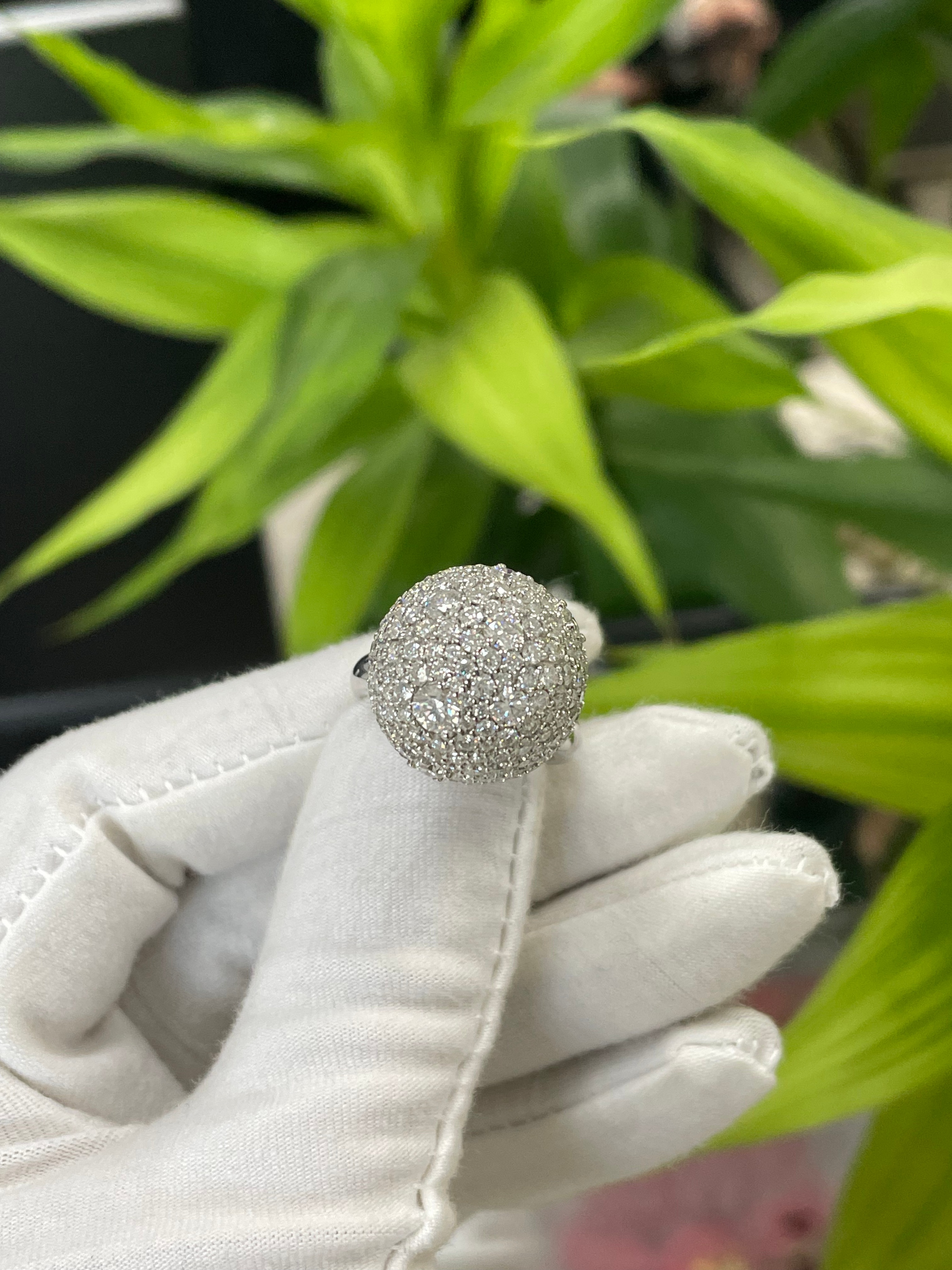 戒指的设计匠心独运,半球形的戒面巧妙地贴合手指,佩戴起来既舒适又显得手指修长。925银的质地保证了戒指的坚固与耐用,而镀上的18K白金则增添了几分高贵气质,使得戒指在光线下熠熠生辉。最吸引人的莫过于那颗满钻圆球,它犹如星辰般璀璨夺目,无论是参加派对还是日常佩戴,都能让你成为众人瞩目的焦点。