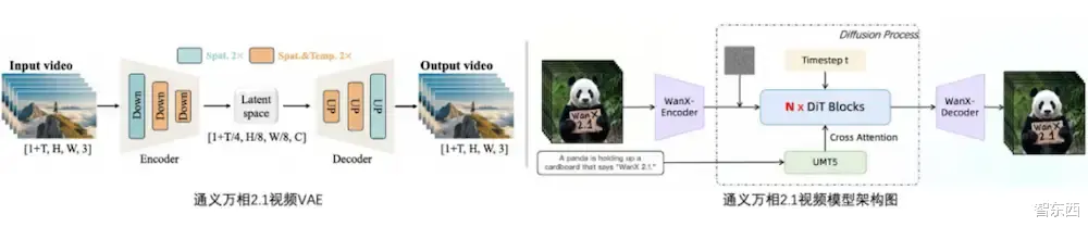 二、通义万相2.1首尾帧生视频模型是如何训练的Wan2.1系列模型均采用DiT(Diffusion in Transformer)架构,将扩散模型的生成能力与Transfomer模型的特征提取和长序列处理能力相结合,并通过VAE视频压缩让视频生成过程兼顾清晰度和工作效率。